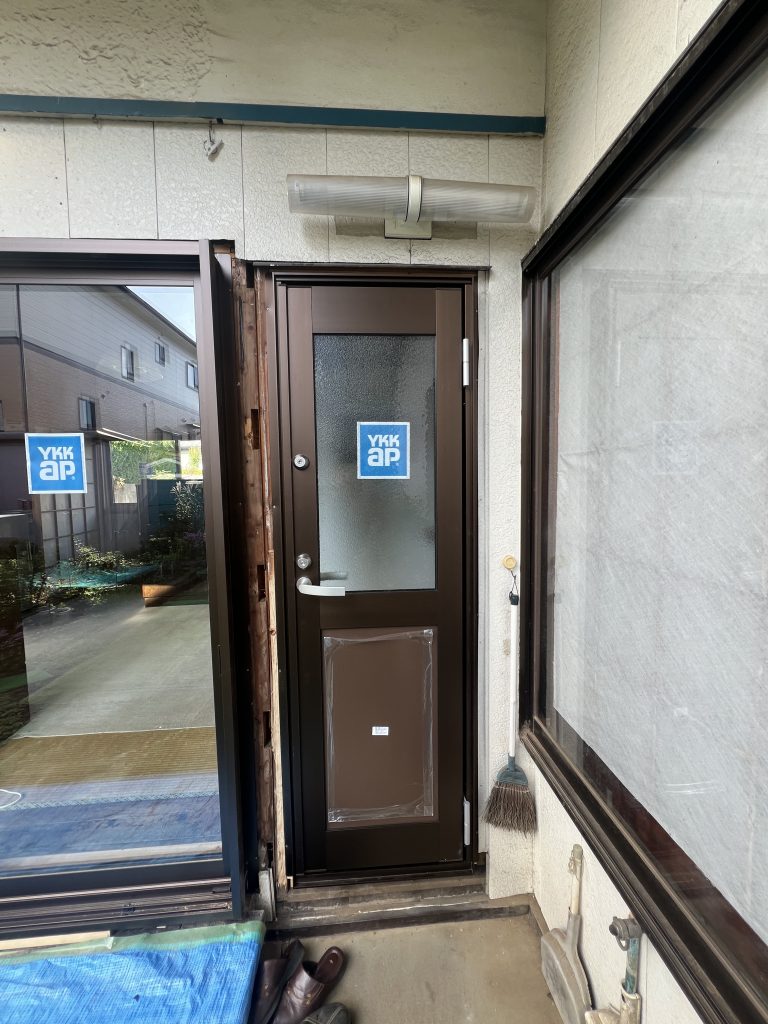 YKK AP『エピソードⅡ NEO』の「雨戸付引違い窓」・「面格子付引違い窓」・「勝手口ドア 」を【はつり工法】で施工させていただきました。