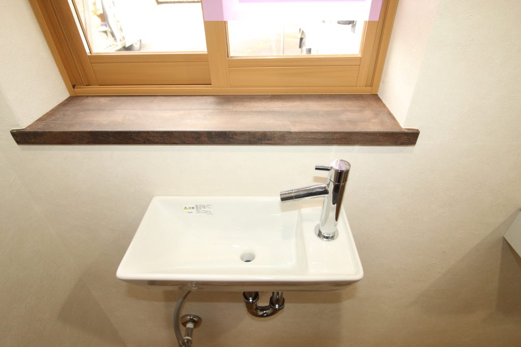 タンクレスでコンパクト、落ち着いた雰囲気のレストルームになりました。