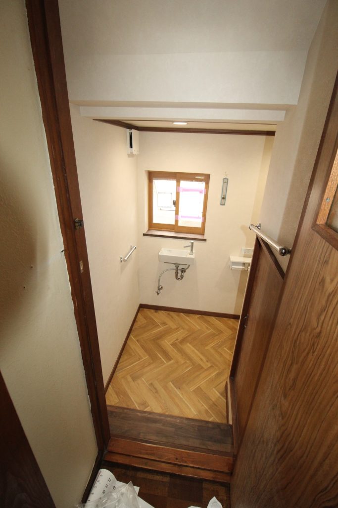 トイレが古くなり大小で分かれているので、1つのトイレにして壁や床も貼り換えキレイにしたいとご依頼いただきました。
