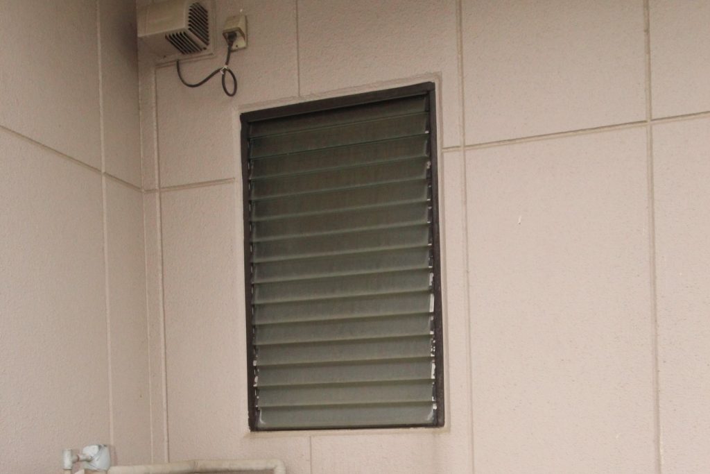 【開き戸(ホワイト)】樹脂ガラス周囲のゴムパッキンがなく、