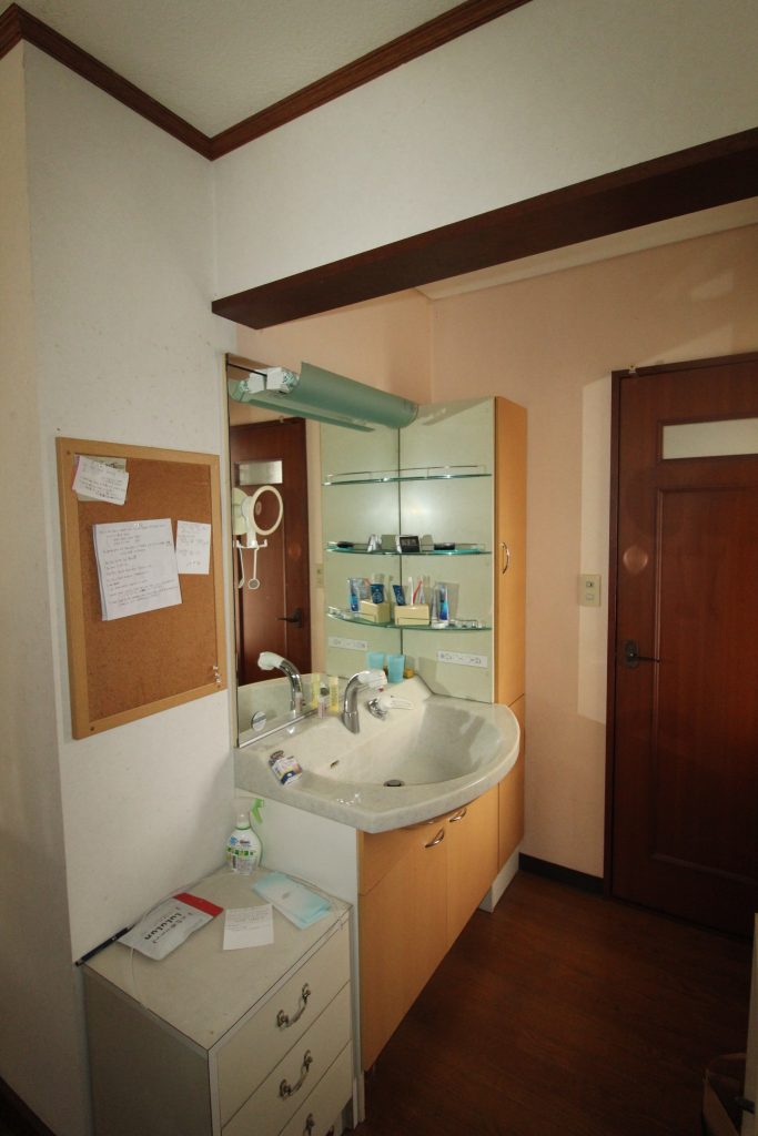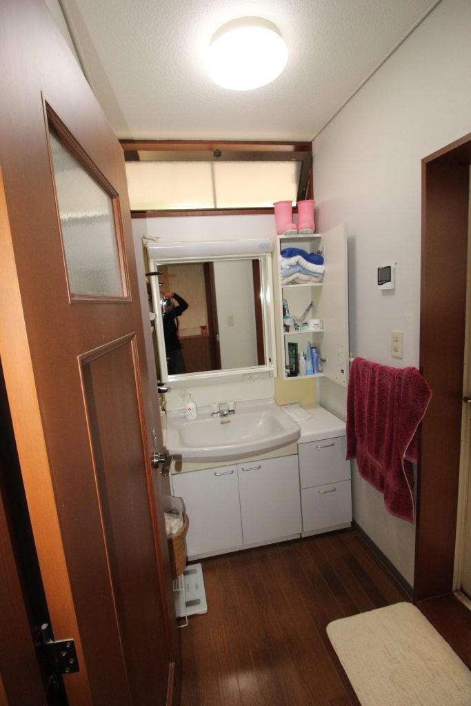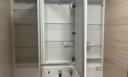 #脱衣場 #脱衣室 #洗面所 #洗面室 #タカラスタンダード #エリーナ #ハイバックカウンター #フェイスクリアミラー #トールキャビネット #収納 #壁 #天井 #クロス #床 #クッションフロア #張替え #キレイ #清潔感