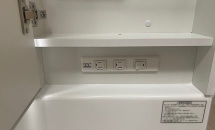 ミラー扉を閉じた状態でも鏡を見ながら使える便利なコンセント付き🔌