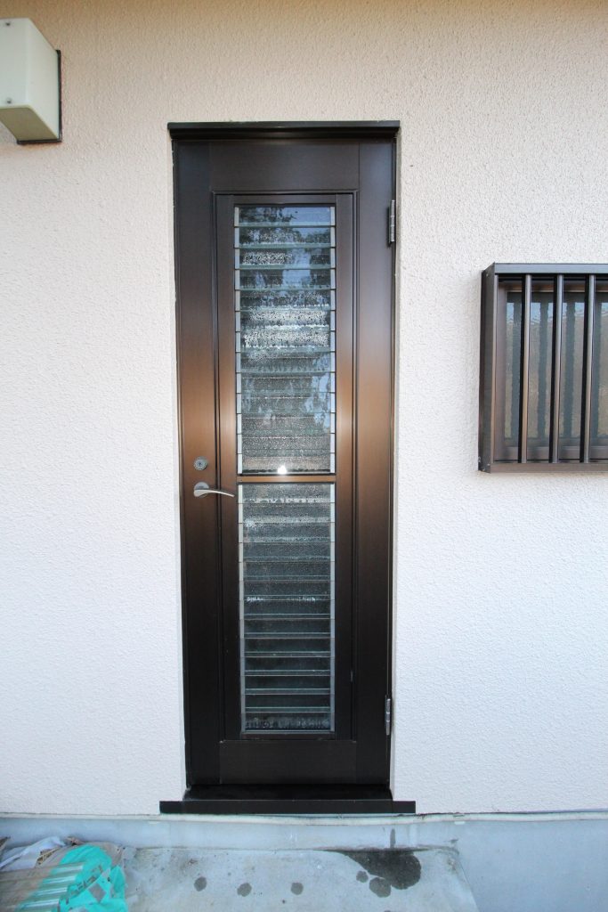 YKK AP『かんたんドアリモ 勝手口ドア』の「通風タイプ」で施工させていただきました。