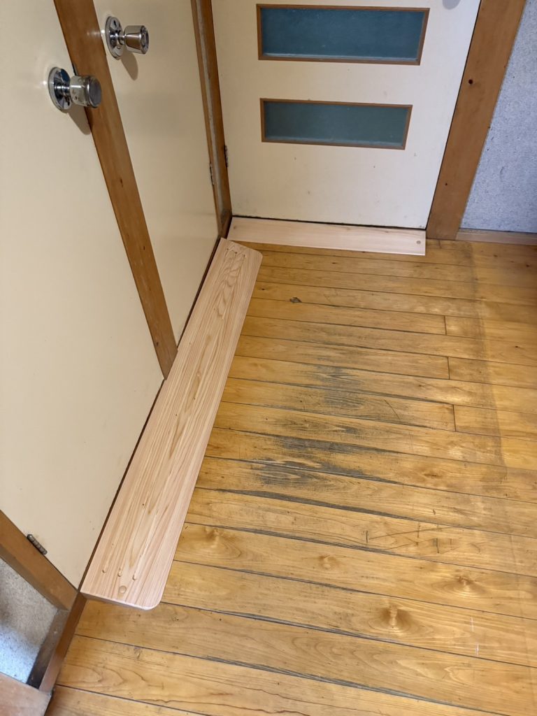 廊下とトイレ・脱衣場との入り口に段差があるので、段差を解消したいとご依頼いただきました。