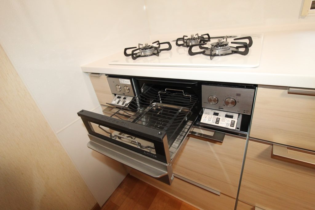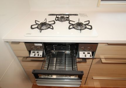 【ハイパーガラスコートトップガスコンロ】オートグリル機能付き両面焼きグリルなので、