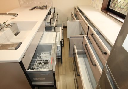 【食器洗乾燥機】シンク下にビルトインできる引き出し式で、食後の片付けがラクに🍽️