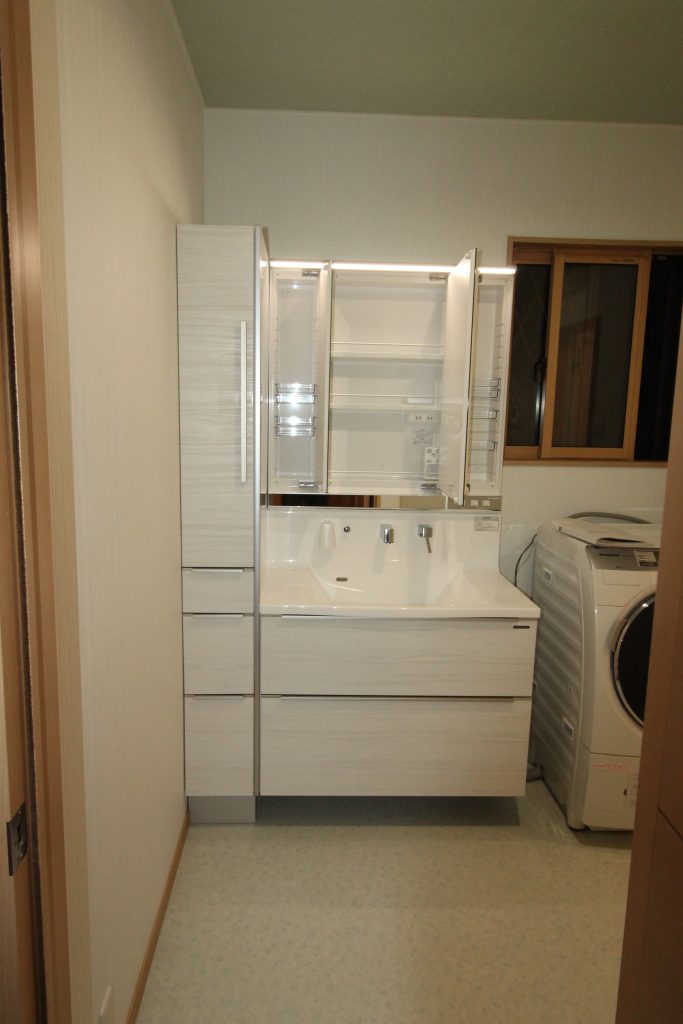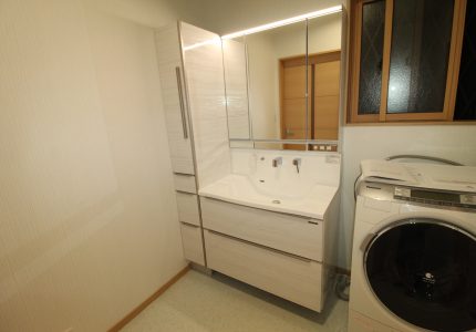 浴室をリフォームするので、脱衣場の壁紙を貼り換えたり、洗面台も新しくしたいとご依頼いただきました。