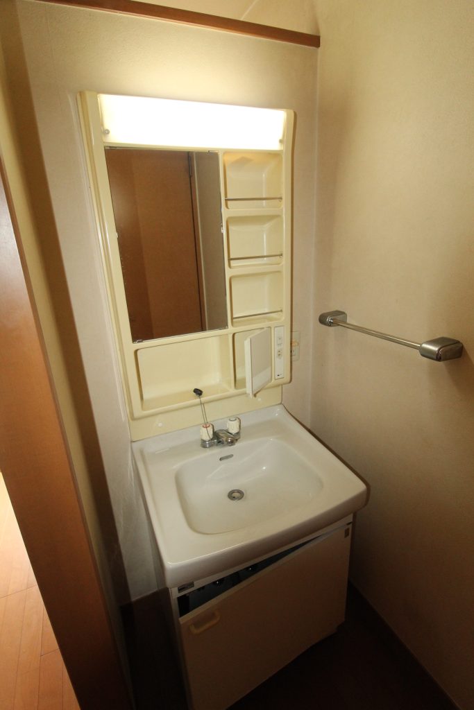 ミラー部分にも工夫が施されており、鏡の裏側には収納棚があり小物類をすっきりと整理できます。