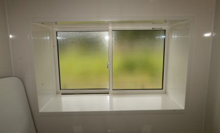 【キープクリーンドア(片引戸)】樹脂ガラス周囲のゴムパッキンがなく、