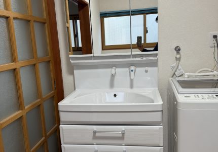 洗面化粧台の新しくしたいとご依頼いただきました。
