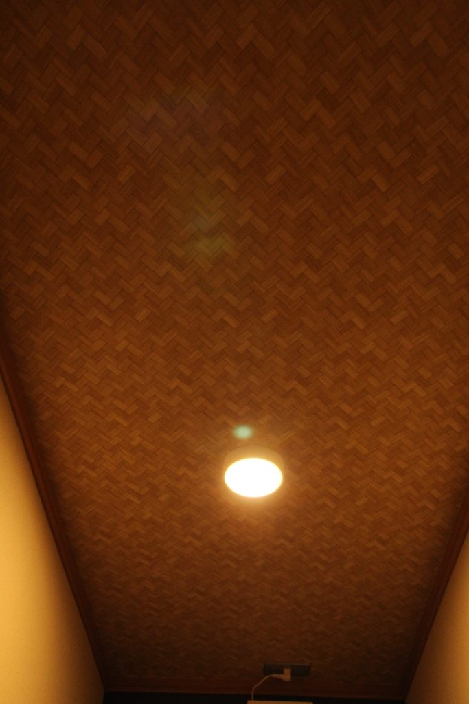 天井は、ほどよい温かみと落ち着いた色調を持つ壁紙で、天井面を優しくまとめ空間に一体感をもたらします。