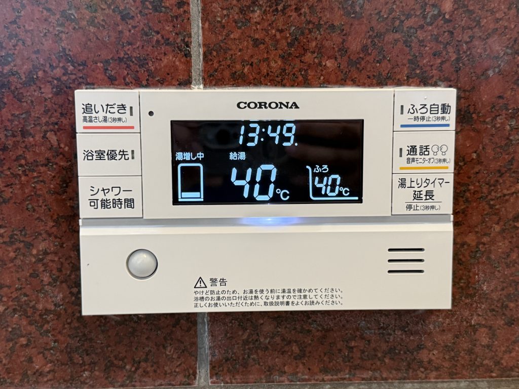 操作面では、標準でインターホンリモコンが付属しており、浴室からも簡単にお湯の確認や操作ができます。