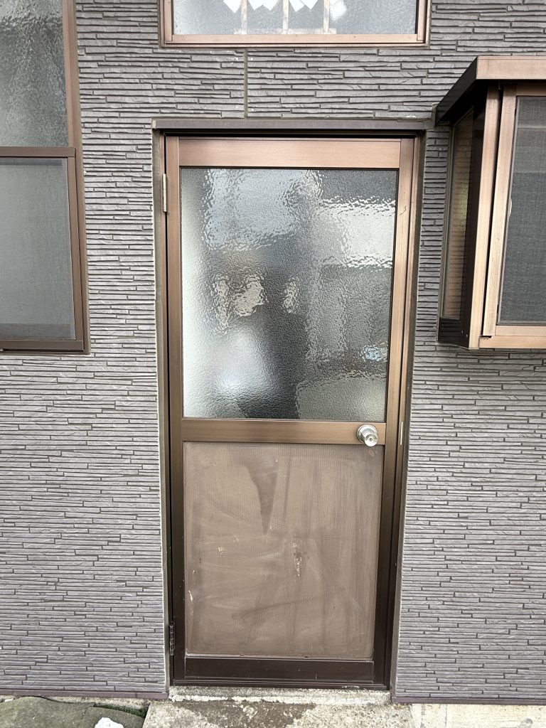 勝手口ドアも古くなり、断熱性・防犯性の高い勝手口ドアに変えたいとご依頼いただきました。