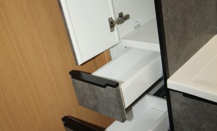 収納力も抜群で、洗面まわりの小物から日用品まで、整理整頓が簡単に行えます。
