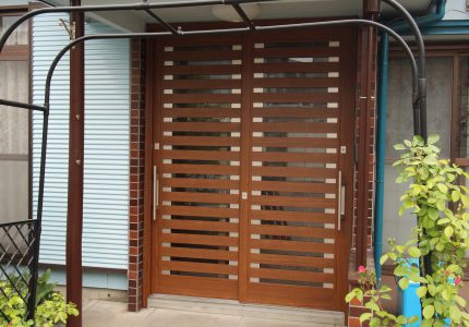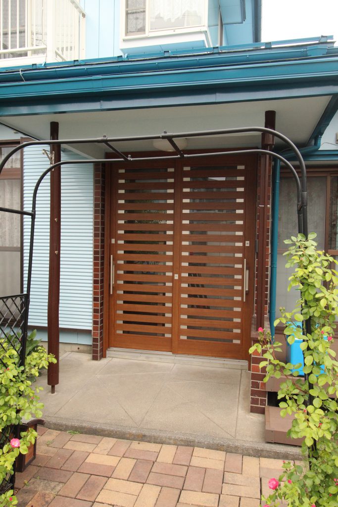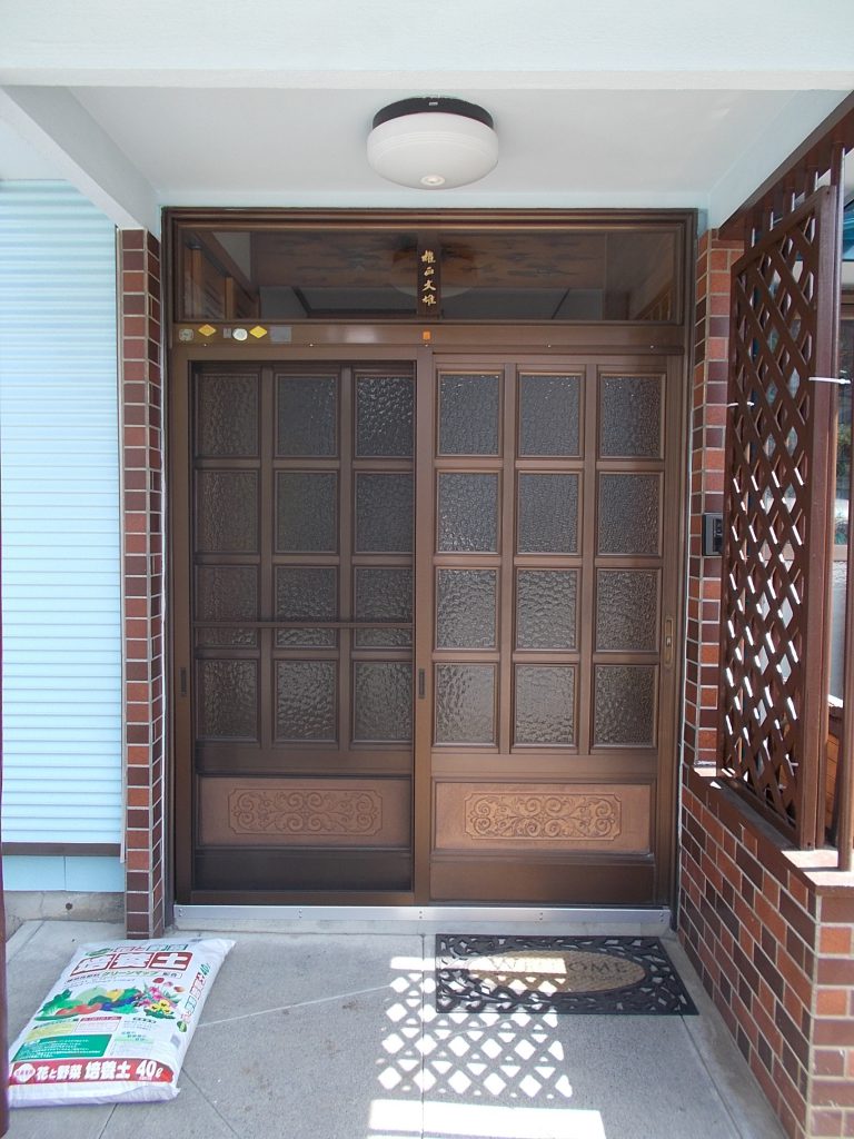 お住まいの顔ともいえる玄関引戸が木調色でガラッと変わり、お住まいの第一印象が大きく変わりました。