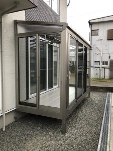 掃き出し窓からは段差があり出ずらく、玄関から出ずに洗濯物が干せたらいいな~と、前々からテラス囲いをつけたいと思い、広告などが入ってくる度に気になりつつもどこに頼んでいいのかもわからずにいたそうです。