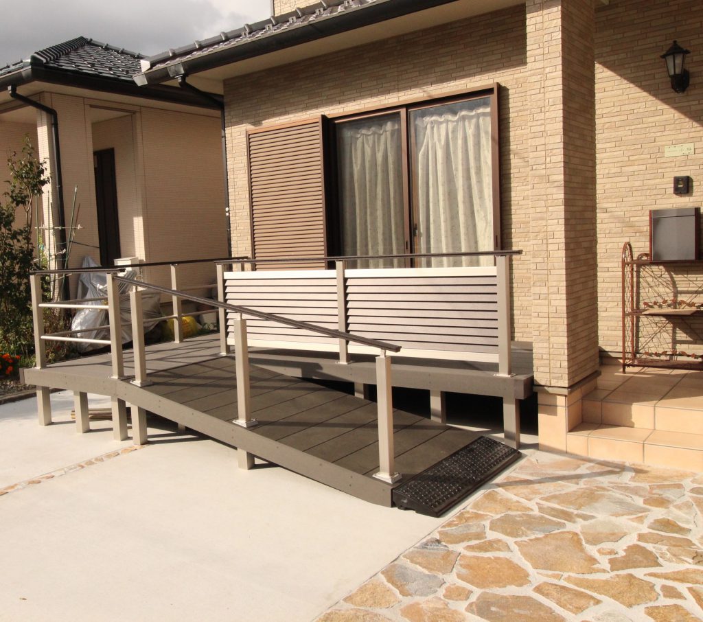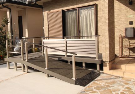 以前、将来掃き出し窓から直接車イスで出入り出来るようにとYKK AP『リウッドデッキ200』を取付けさせていただきました。