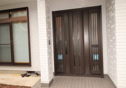 玄関はYKK AP『かんたんドアリモ 玄関ドア』を取り付けさせていただきました。