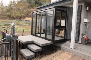 奥様が自宅の一室でコーヒーの焙煎の仕事をしていて、お客様がいらして商品の受け渡しなどを掃き出し窓から行いたいとご相談いただきました。