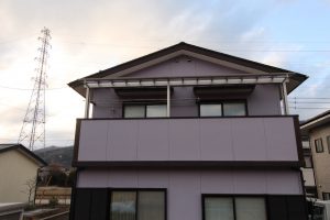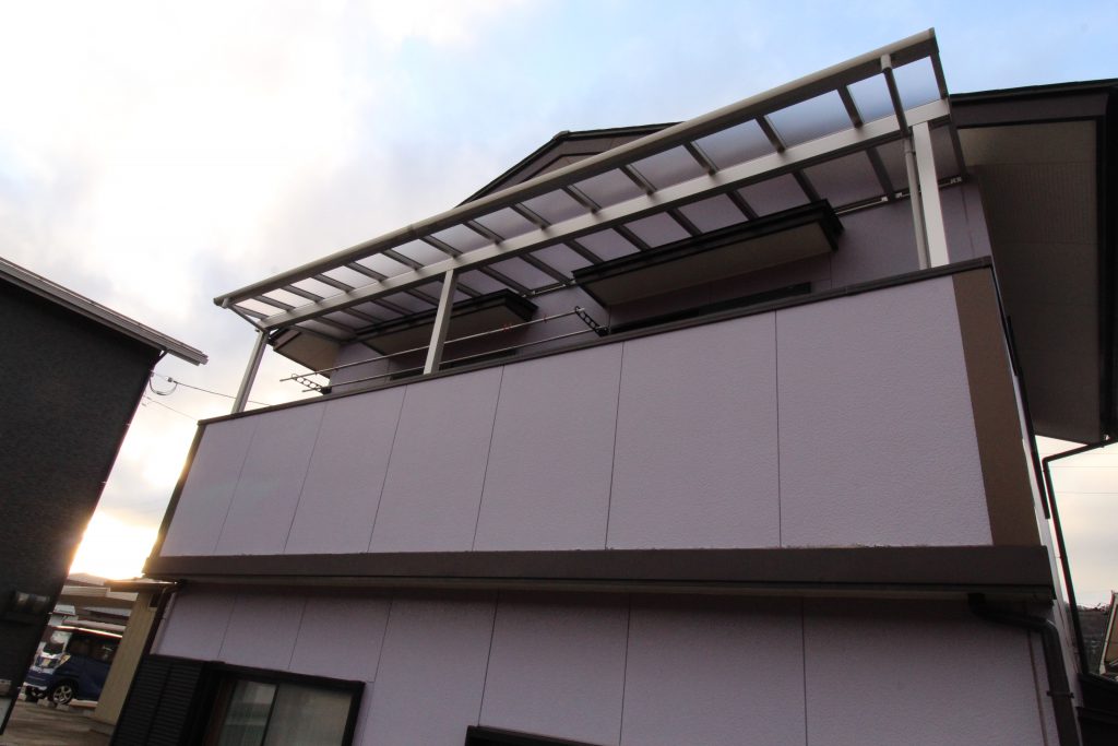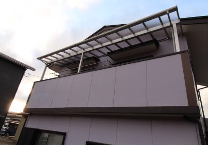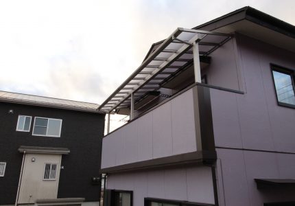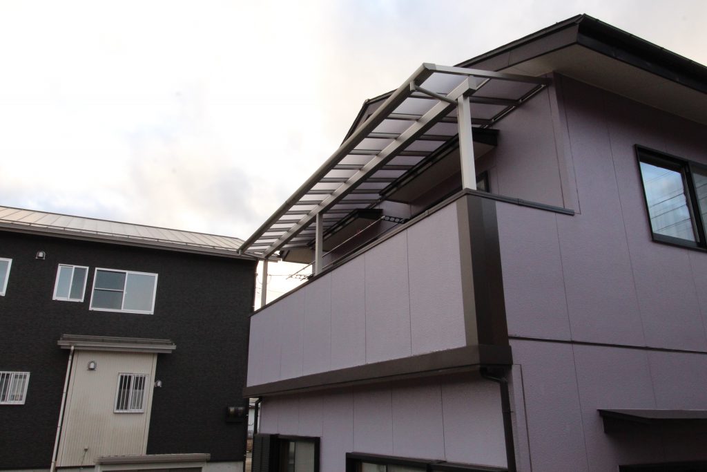2階のバルコニーに屋根がなく雨が降ると濡れてしまうので屋根を取りつけ、あまり濡れないようにしたいとご依頼いただきました。