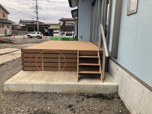 ウッドデッキに扉があれば収納場所としても活用できたり、デッキ下にゴミが入っても掃除できるので、扉をつけれないかご相談いただきました。