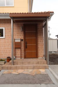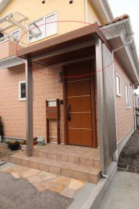以前のポストは何度か強風で倒れてしまったので強度のあるものに変え、また雨などが降った時、玄関の出入りの際や郵便物が濡れないよう屋根を広くしたいとご依頼いただきました。