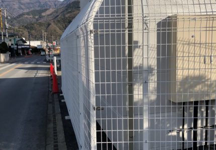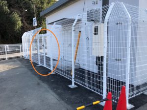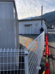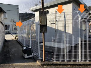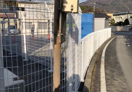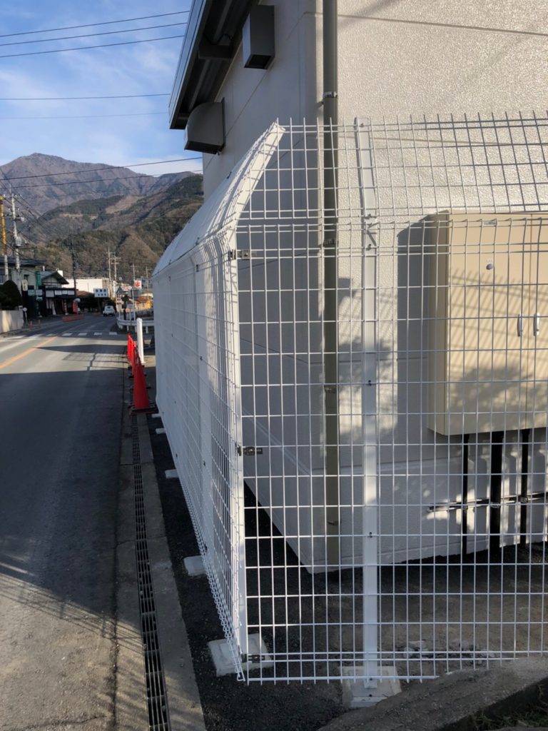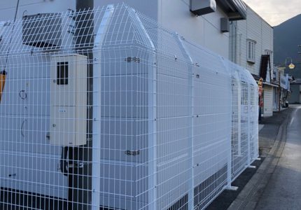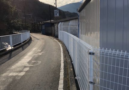 フェンス設置のご依頼をいただき、敷地の境界にセキスイ『メッシュフェンスG10』、人の侵入を防止したい施設外周に『メッシュフェンスG10 忍び返しタイプ』、出入りの際に使用する『メッシュフェンスG10 門扉(両開き)』を取付けさせていただきました。