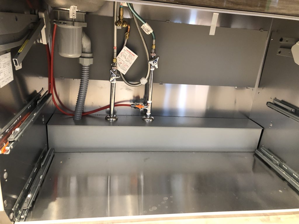 取付けた後は、シンク下のキャビネット(引き出しタイプ)を業者の方がキレイに加工して下さり、キッチンを見た状態では特に今までと変わりありません。