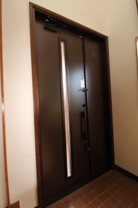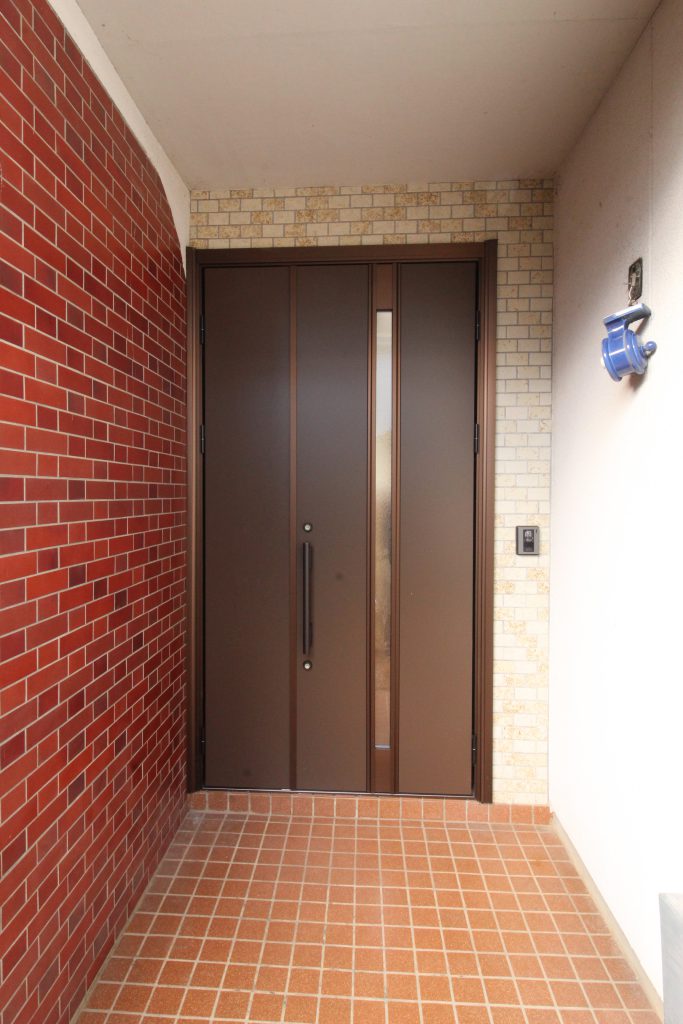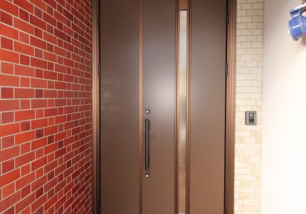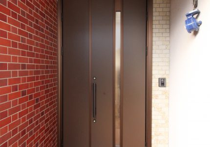 玄関ドアの経年劣化によって色褪せていたり、建付けが悪くなり下枠にドアがこすれてしまい開閉しにくいので新しい玄関に変えたいとご依頼いただきました。