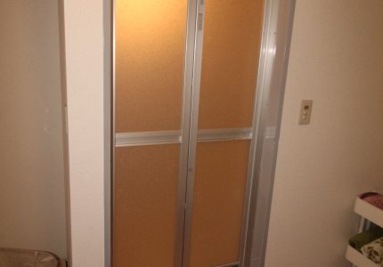既存の折戸が古くなり壊れてしまったので、浴室を変えずに折戸のみ新しくしたいとご依頼いただきました。