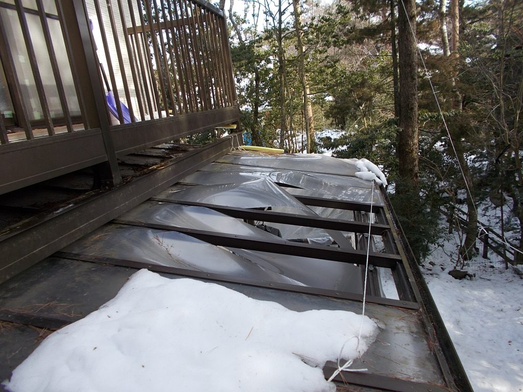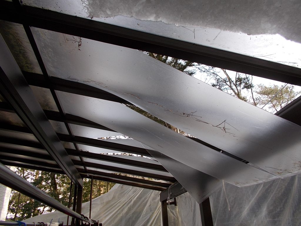 雪の重みでテラス屋根のパネルが外れ修理のご依頼をいただきました。
