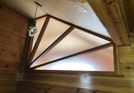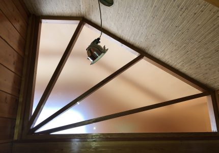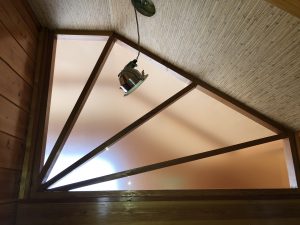 階段のところが壁だと日中でも暗くなってしまうので、割れにくく光を取り入れられる製品を取付けてほしいとご依頼いただきました。