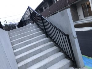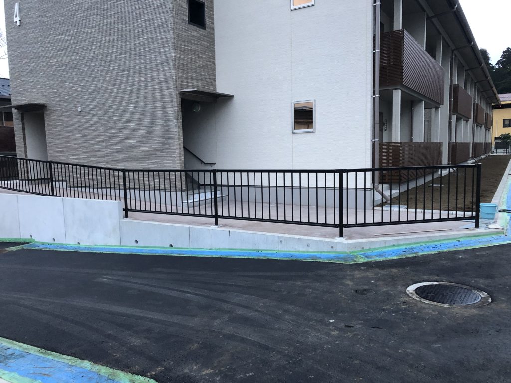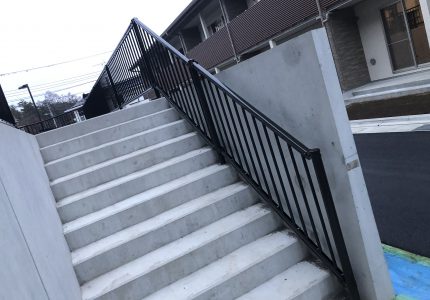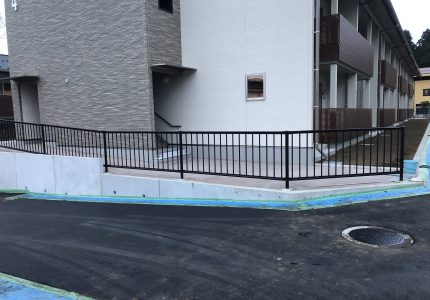敷地と道路に高低差がある場所もあり、小さいお子様などが誤って転落しないよう朝日スチール工業『ガードフェンス』を取付けさせていただきました。