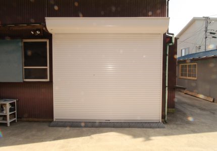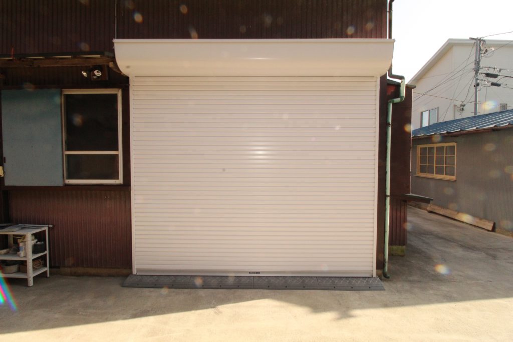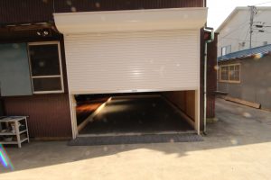 開口部には三和シャッター『軽量電動シャッター』を取付け防犯対策としても効果を発揮し、離れた場所からでもワンタッチで開閉・停止が行えるリモコン操作でラクラク!
