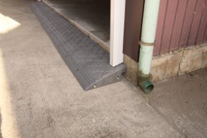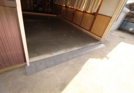 倉庫の出入り口の段差に段差プレートを設置し、除雪車が出入りしやすいようにしました!
