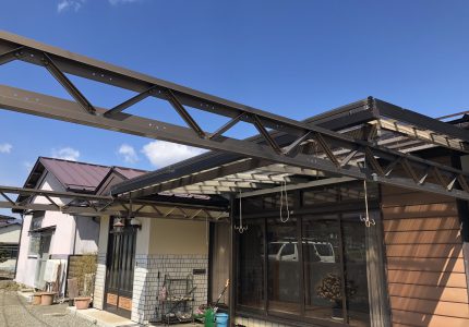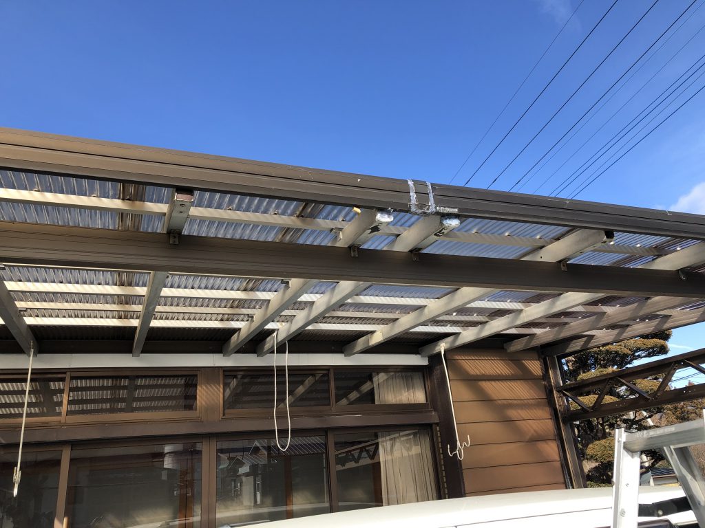 カーポートの軒樋が機能しておらず、雨の日車の乗り降りの際にポタポタ垂れてきて濡れてしまうので修理してほしいとご依頼いただきました。