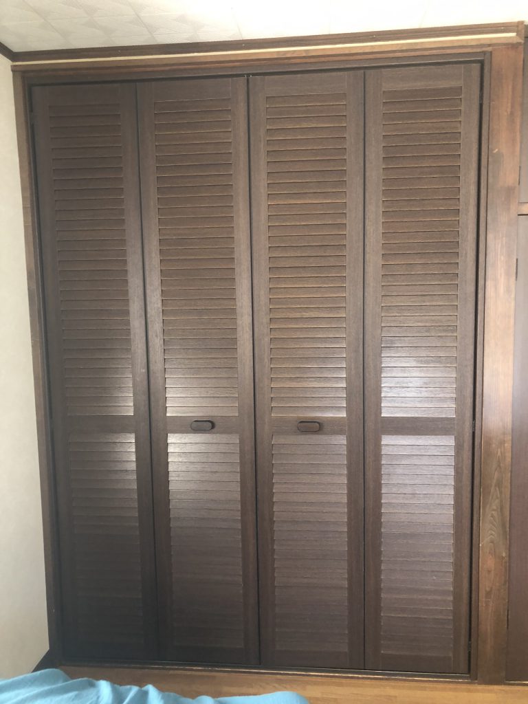 現調させていただき、どのような状態なのかどのように修繕すればいいか確認し、クローゼットドアを会社に持ち帰り作業させていただきました。