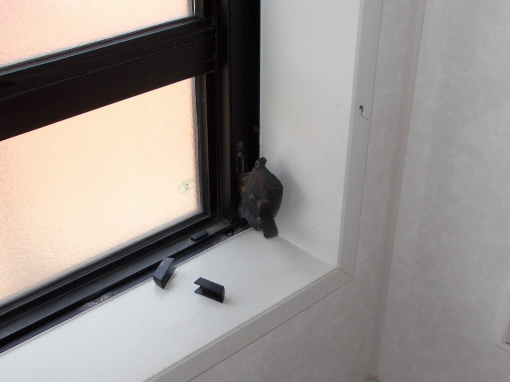 また浴室の窓のオペレーターのビスを止めるところが欠け壊れてしまったので、どちらも交換してほしいとご依頼いただきました。