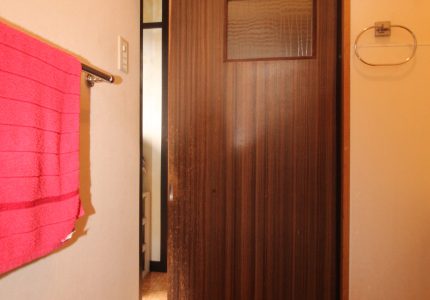 脱衣場の入り口が開け閉めするのに重いので、修理してほしいとご依頼いただきました。