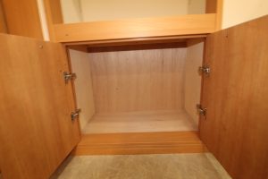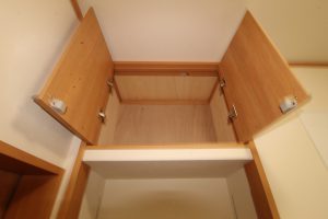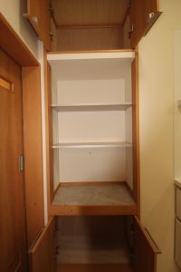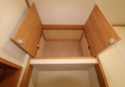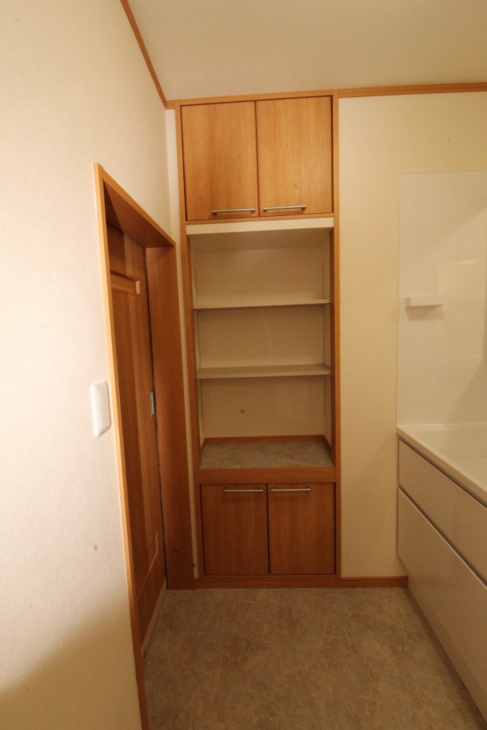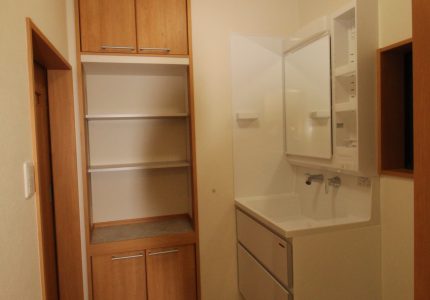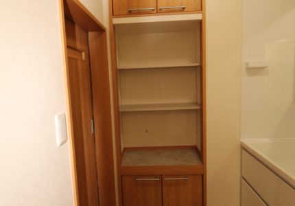 収納棚には、YKK APラフォレスタ『収納開き戸』を取付けさせていただきました。