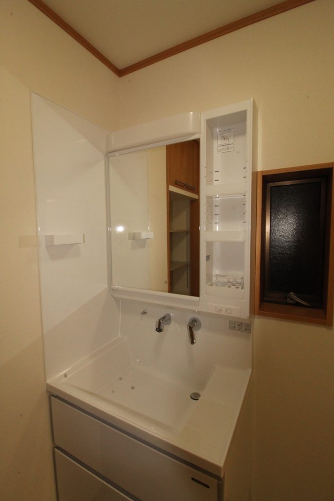 洗面化粧台横には「ホーロークリーン洗面パネル」を設置し、側面の空間を有効活用!