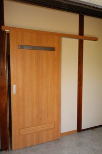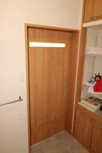 脱衣場入口ドアは、YKK APラフォレスタ『アウトセット引戸』を取付けさせていただきました。