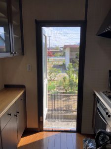 勝手口にYKK AP『横引き収納網戸』を取付けさせていただきました。
