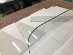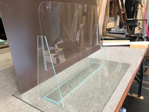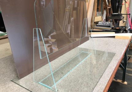 今回ご依頼をいただき、アクリル板は傷がつきやすいという点から5mmの『透明ガラス』を使用した弊社ならではの、スニーズガードを作製させていただきました。