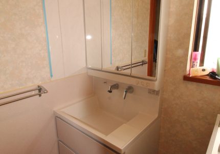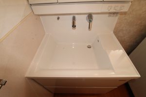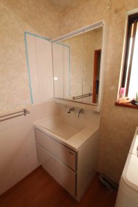 使用している洗面台が古くなってきているので、たくさん収納がついている物に新しく変えたいとご依頼いただきました。