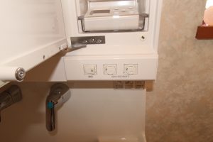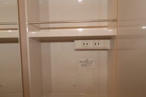 ミラー裏の両サイドは、クリアトレイで収納物が見やすく収納物に合わせて12段階高さが調整でき、内部コンセントなど機能も充実しています。