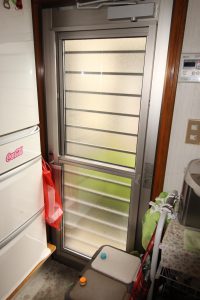 勝手口ドアを明るく、ドアを開けずに風を取り入れられるものにしたいとご依頼いただきました。
