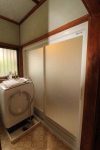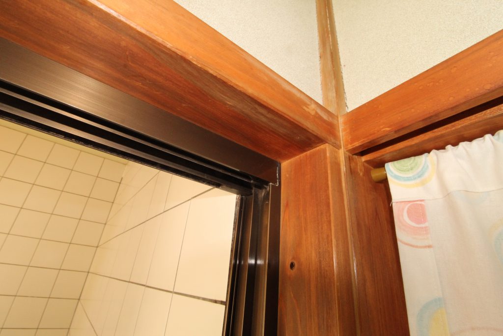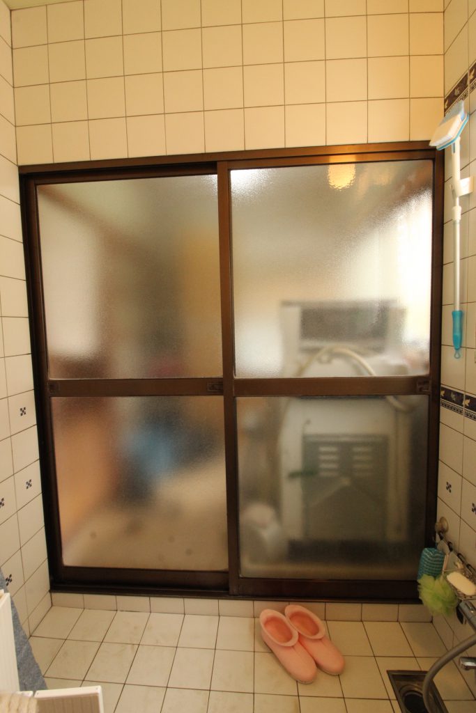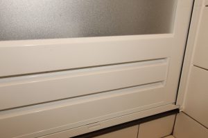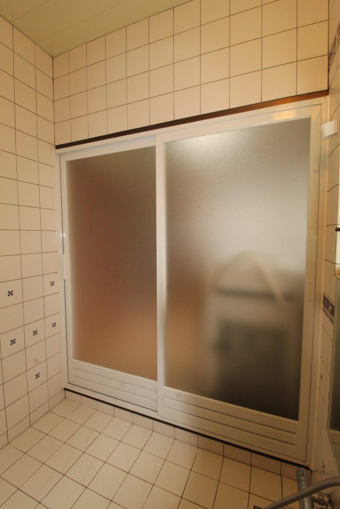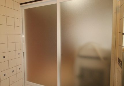 浴室ドアが開閉しにくく、以前にも戸車を交換したがすぐに動きが悪くなったので新しくしてほしいとご依頼いただきました。