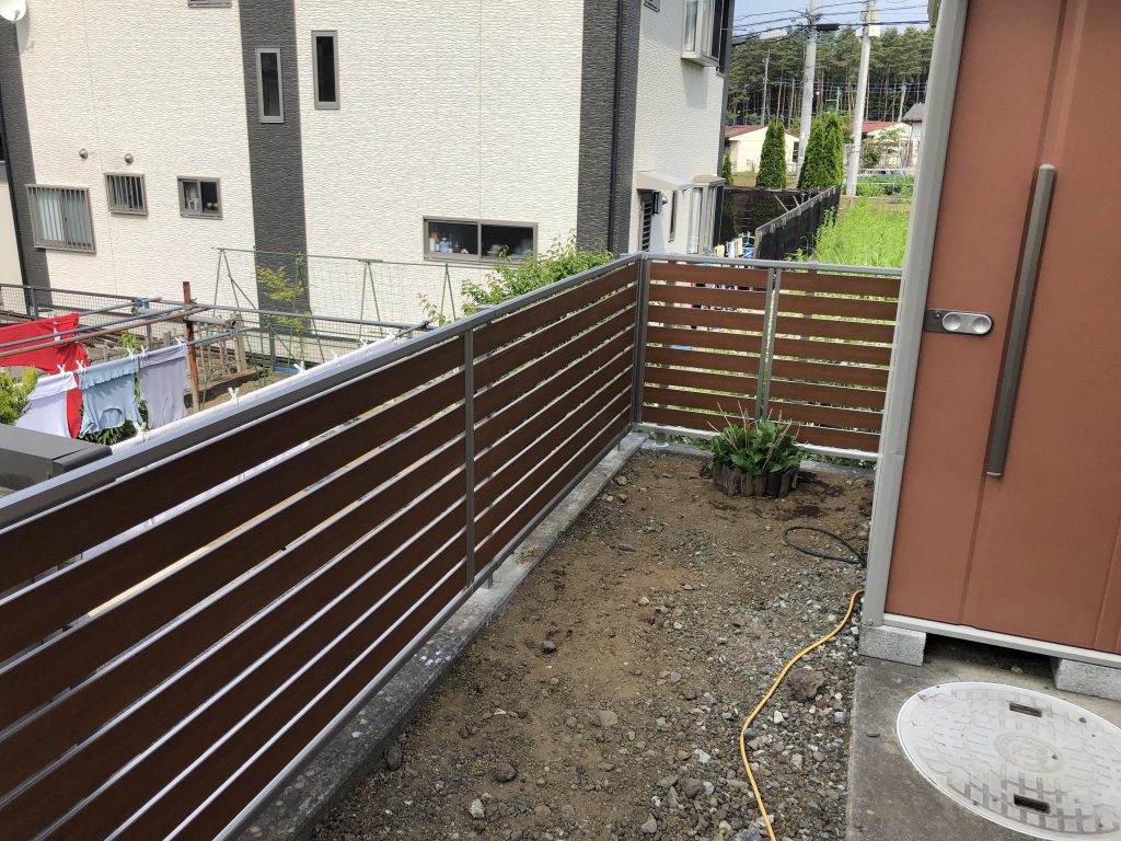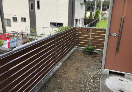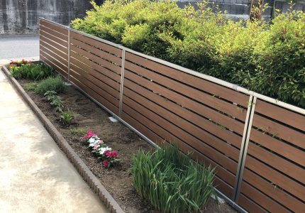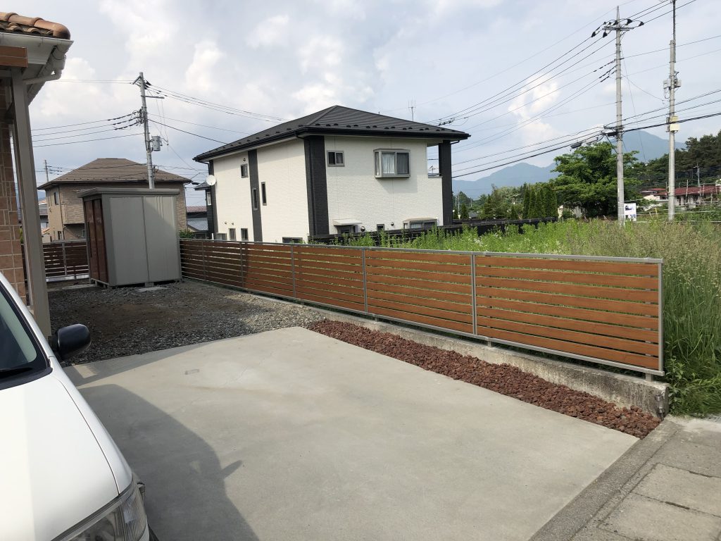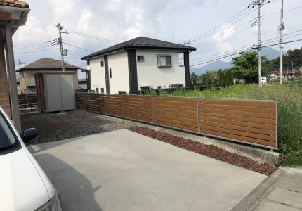 フェンスには、敷地境界の表示と目隠しの目的があり、コの字型にYKK AP ルシアス『フェンス(F04型)』を施工させていただきました。