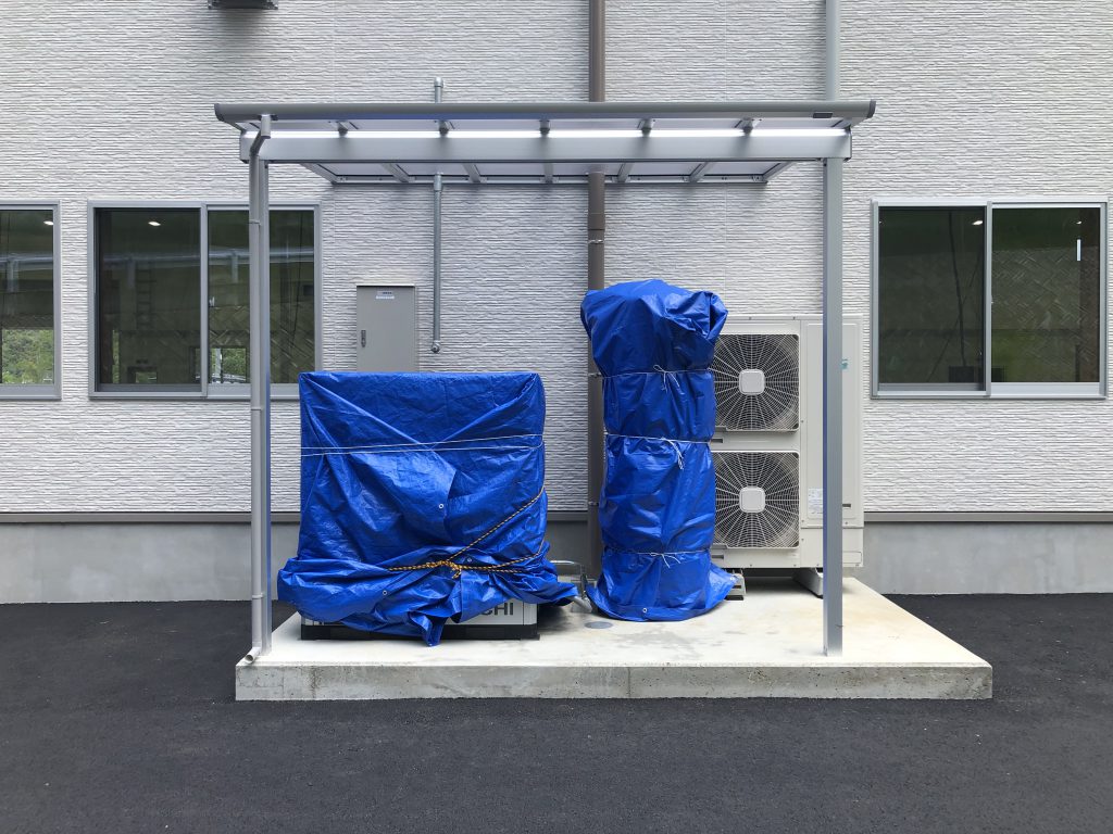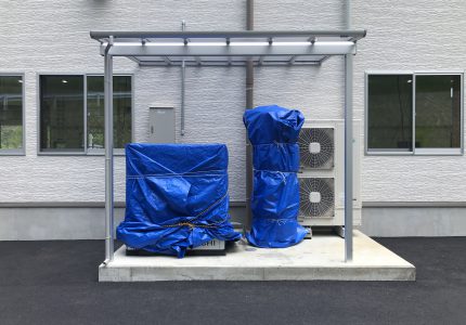 コンプレッサーなどの機械を置いておくので、直接雨などがかからないようにしたいとご依頼いただきました。
